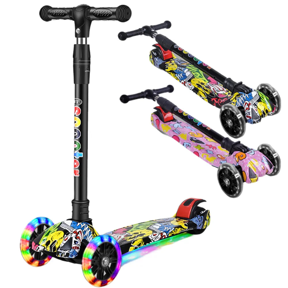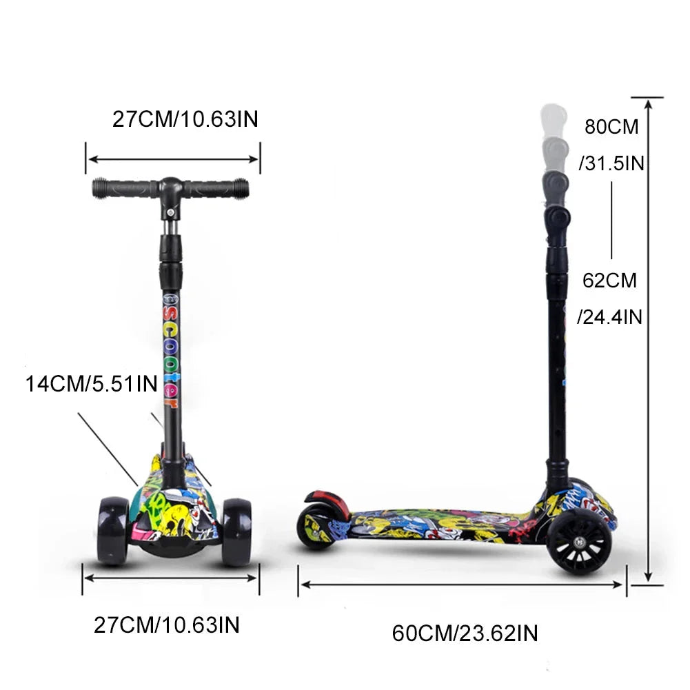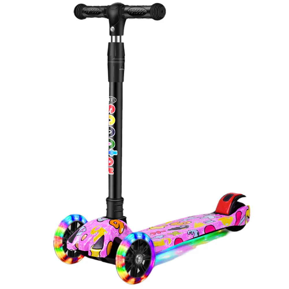 VârstăTrotineta pliabilă cu trei roți pentru copii, cu roți sclipitoare, este alegerea perfectă pentru micii călăreți cu vârsta cuprinsă între 2 și 8 ani. Trotineta are un design colorat atrăgător cu motive, o construcție stabilă cu trei roți pentru o călătorie sigură și pliere ușoară pentru transport și depozitare convenabilă. Roțile iluminate cu sclipici oferă un efect distractiv la fiecare plimbare, iar ghidonul reglabil pe înălțime permite ajustarea în funcție de nevoile copilului.