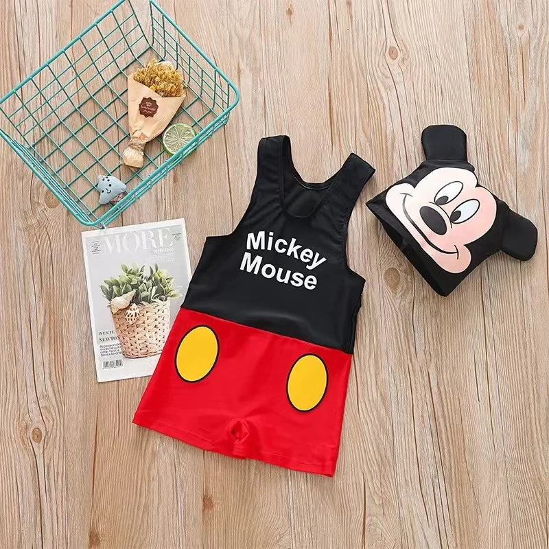 Costum de baie pentru băieți și șapcă Mickey Mouse.
