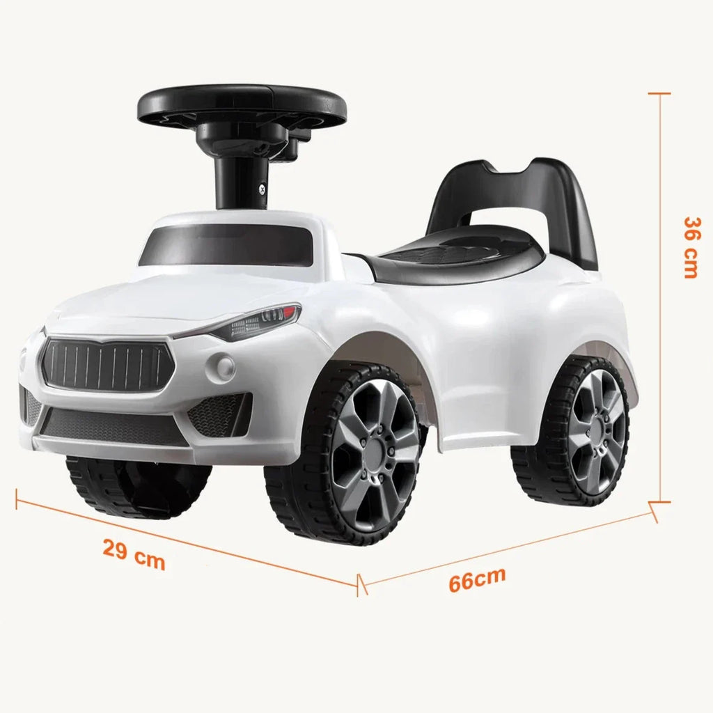 VârstăBalansoarul pentru copii în formă de mașină este alegerea ideală pentru copiii mici cu vârste cuprinse între 1 și 3 ani, care învață primii pași și își dezvoltă echilibrul și abilitățile motorii. Designul elegant cu elemente realiste de mașină și un volan cu efecte sonore va garanta distracția acasă și în aer liber. Trotineta este fabricată din plasticu durabil, rezistent la impact și oferă o plimbare sigură datorită celor patru roți stabile. Sub scaun există un compartiment de depozitare la îndemână pentru jucării sau obiecte mici. Spătarul lat și bara de siguranță din spate protejează copilul de răsturnarea pe spate.