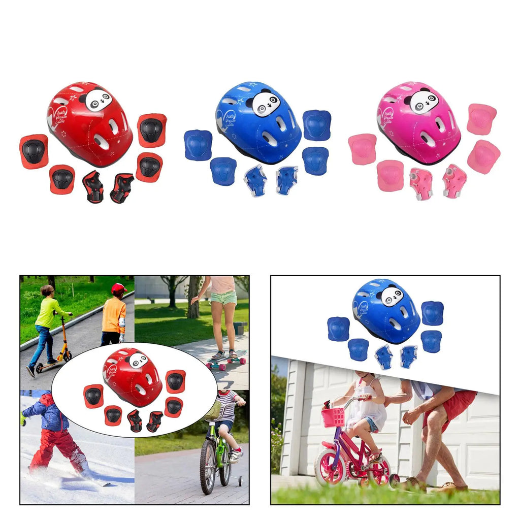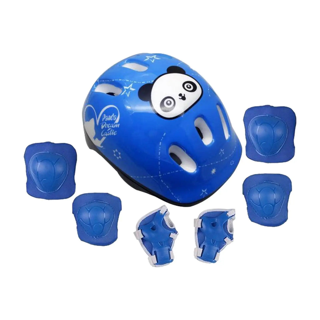 • Set complet de protecție: cască + 6 protecții (genunchi, coate, încheieturi)